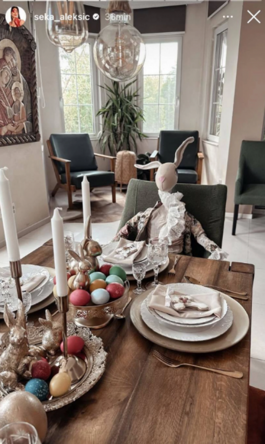 Ona je mislila na svaki detalj, pa je sve ukrasila svećama, igračkama i, naravno, ofarbanim Uskršnjim jajima, a Veliki zec sedeo je za stolom, baš kao regularan član porodice.