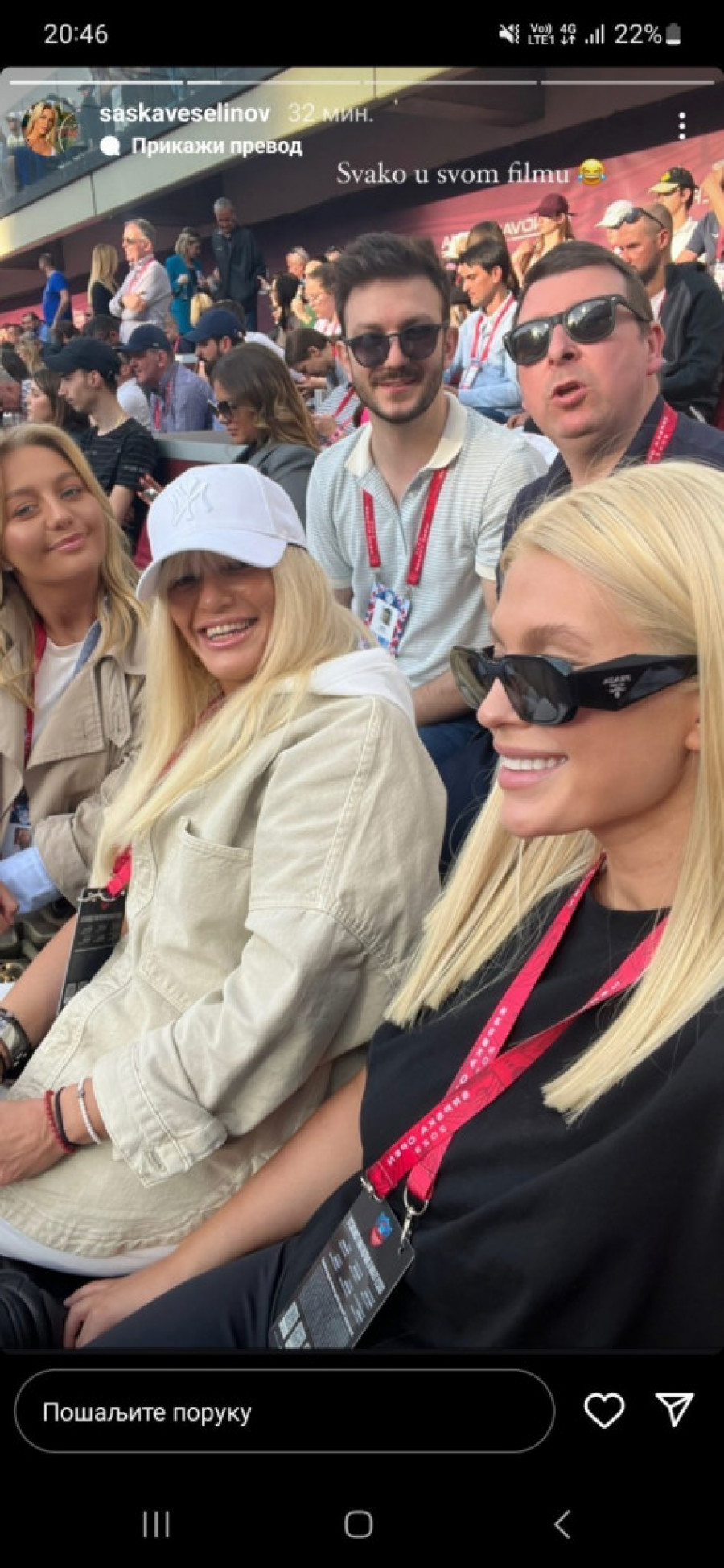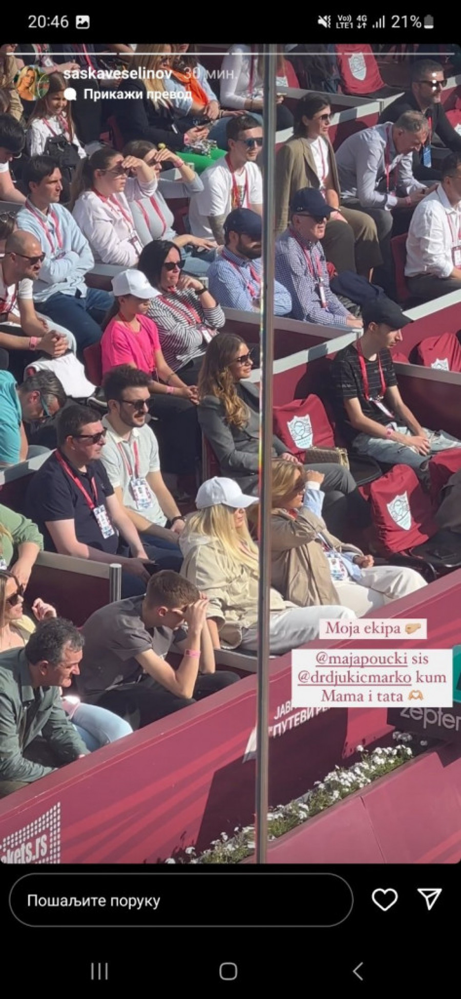 Naime, ovu utakmicu nije mogla da propusti i njegova snajka, Saška Veselinov, koja je na svom instagram profilu podelila snimak na kom Novak izlazi na teren.