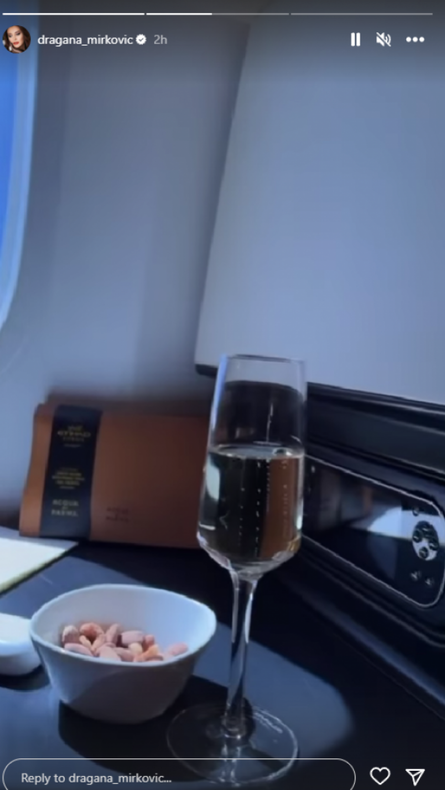 Folk pevačica i zvezda, Dragana Mirković, javila se pratiocima na Instagramu iz aviona, pa pokazala luksuz o kakvom mnogi mogu samo da sanjaju.