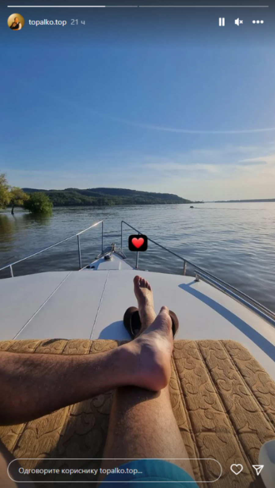 Poznato je da pevač Milan Topalović Topalko uživa u pecanju i boravku pokraj vode, te je sada, čim su mu vremenske prilike to dopustile, jedva dočekao da se na svojom brodu opusti uz omiljeni hobi.