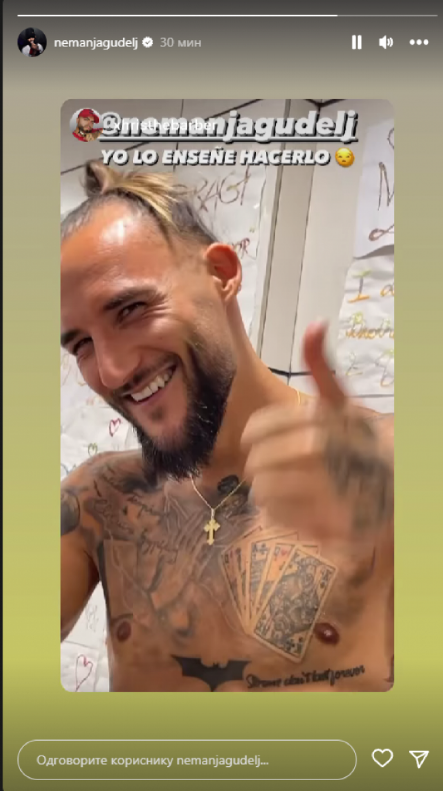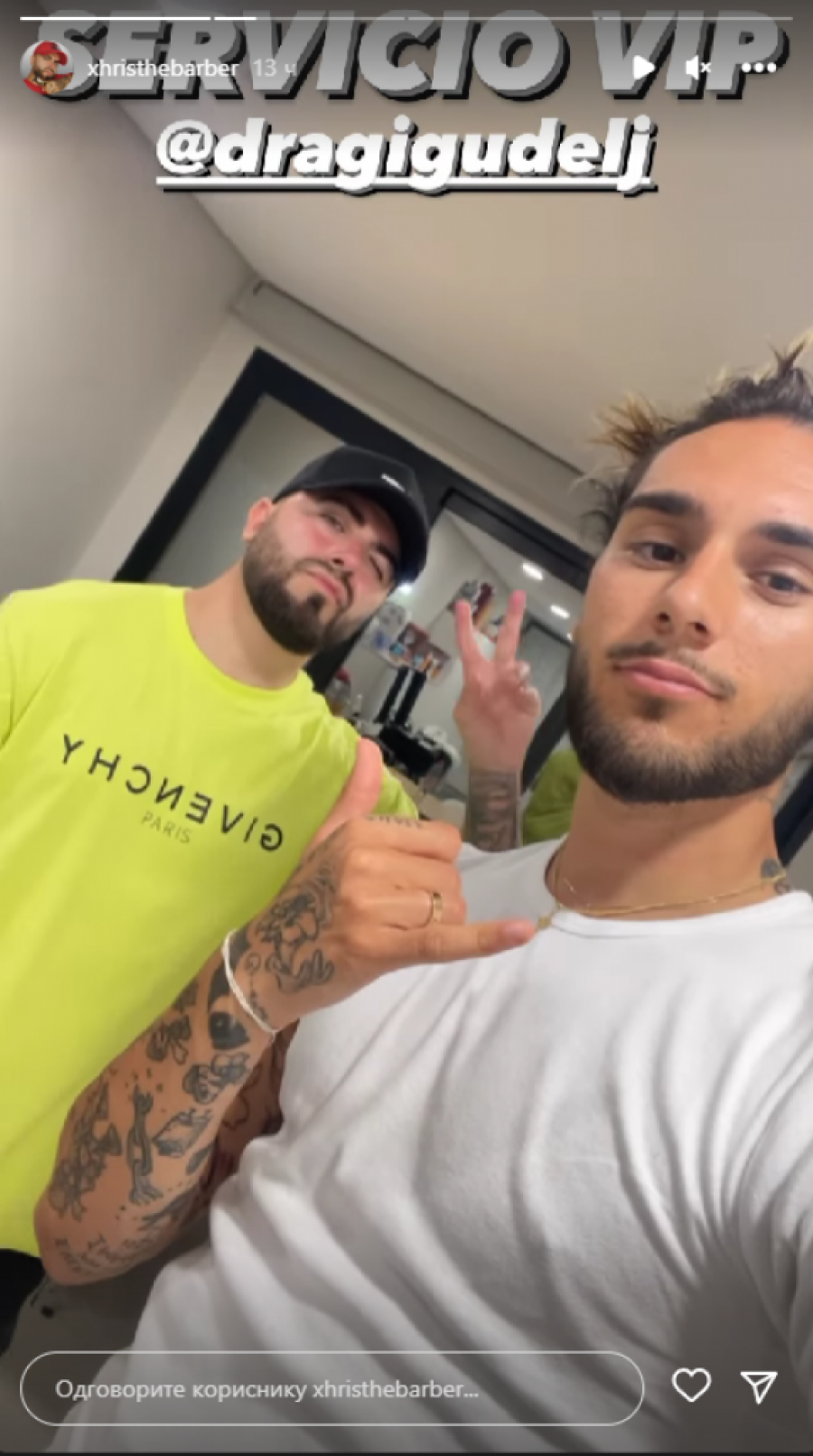 On je posetio svog frizera zajedno sa bratom Dragijem, koji mu je spremio novu frizuru. Nakon friziranja, Nemanja je podelio stori sa frizerom, gde se vidi kako frizer šutira flašu.