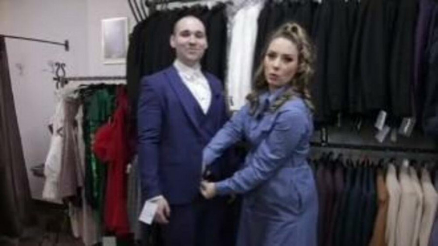 Takmičar je probao odelo, a onda je izašao da ga svi vide, ali voditeljki je zapao za oko šlic koji je takmičaru bio otkopčan, pa se ponudila da mu pomogne.