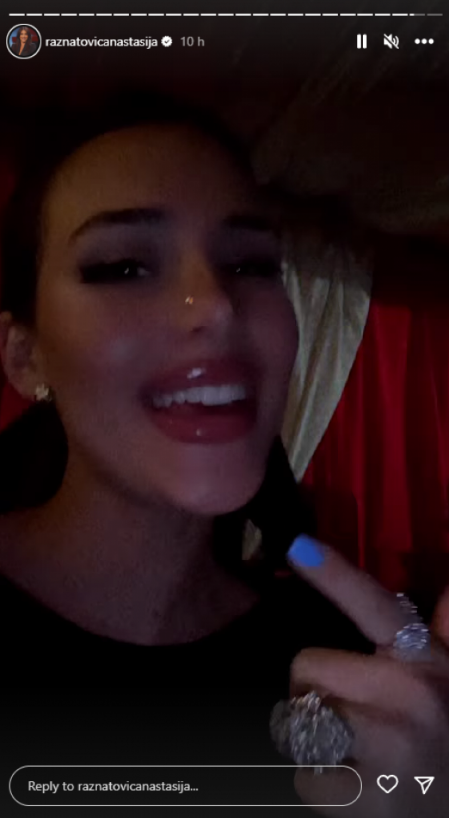 Nakon što je portal Republika prvi otkrio da je pevačica Anastasija Ražnatović, ćerka Ceca Ražnatović u drugom stanju, ona se oglasila na Instagramu i objavila nekolicinu čestitki od prijatelja i porodice.