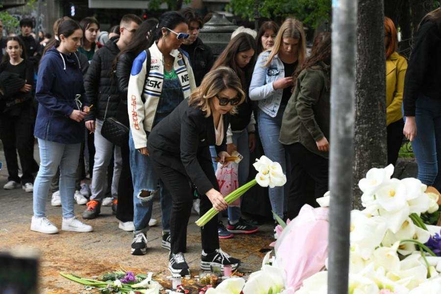 Neda Ukraden pojavila se ispred OŠ "Vladislav Ribnikar" kako bi odala počast žrtvama nemilog događaja u Beogradu.