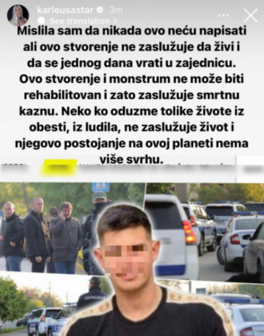 ''ZASLUŽUJE SMRTNU KAZNU''! Jelena Karleuša se hitno oglasila nakon masakra u Mladenovcu: MONSTRUM ne zaslužuje da živi! (FOTO)