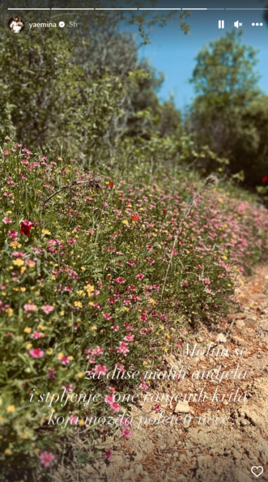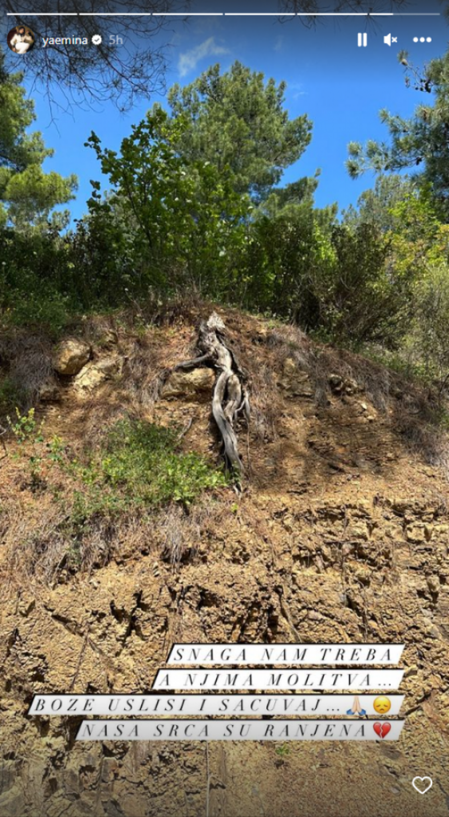 Na svom Instagram profilu objavila je niz fotografija iz prirode, uz molitve za sve porodice tragično preminulih i nadu u bolje sutra: