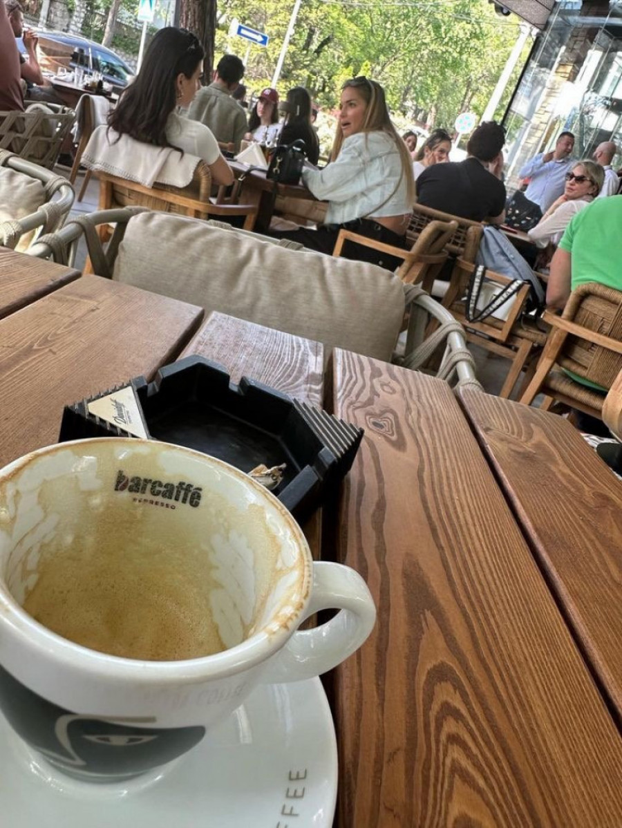 Nakon saznanja da je Nino Čelebić, njen bivši dečko, u srećnoj vezi, zaljubljeniji nego ikada, pevačica se povukla, a sada smo imali priliku da je zateknemo u jednom kafiću u Beogradu, kako ispija kafu sa prijateljicom.