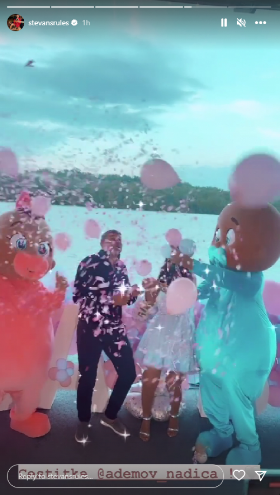 Kako su otkrili nakon bušenja balona, par čeka devojčicu, što su pokazale konfete u roze boji. Nakon emotivnog saznanja, budući roditelji su skakali od sreće, a njihovi prijatelji su vrištali u glas.