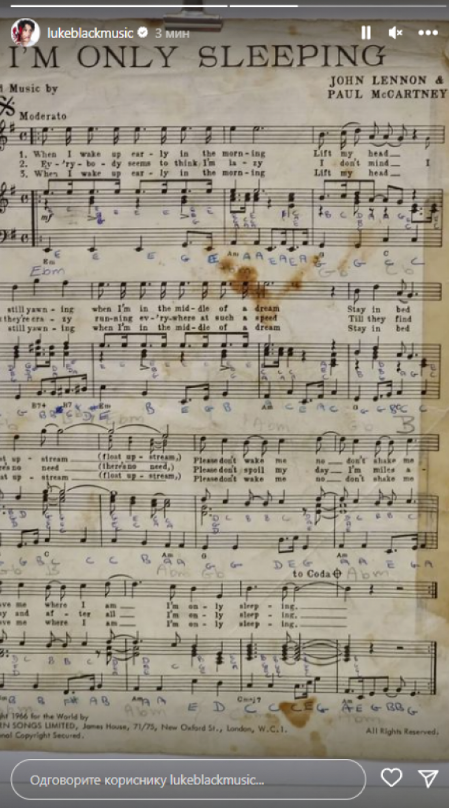 Ipak, našem Luki je nešto drugo privuklo pažnju. Dok je razgledao eksponate u muzeju, Luka je primetio jastuk, ispod kojeg se nalazio notni list. Kad je prišao, video je da su na njemu note za pesmu "I'm Only Sleeping", koju su napisali i komponovali Džon Lenon i Pol Makartni. Ovo mu je privuklo pažnju jer je naziv ove pesme u prevodu sa engleskog "Ja samo spavam", što neodoljivo podseća na Lukinu pesmu "Samo mi se spava", sa kojom nas predstavlja na Evroviziji.