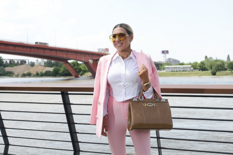 Nakon što je usnimila kadrove u helikopteru, voditeljka se presvukla, pa posetila narednu lokaciju. Voditeljku smo zatekli na šetalištu Beograda na vodi, gde je ispozirala za naše kamere.