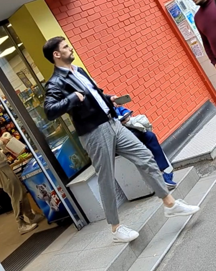 Milan je nosio belu košulju, preko koje je obukao crnu kožnu jaknu, a dole je imao sive pantalone. Odmah je izazvao veliku pažnju i ljudi su se okretali za njim i zanimali šta je kupio u prodavnici.