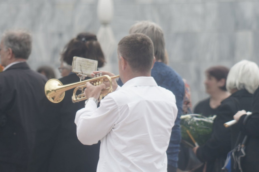 Muzičar ispred kapele svira tužne pesme i većina ljudi plače zbog tragičnog odlaska jutjubera i bio je na čelu tužne povorke koja je krenula da isprati Mirka na večni počinak.