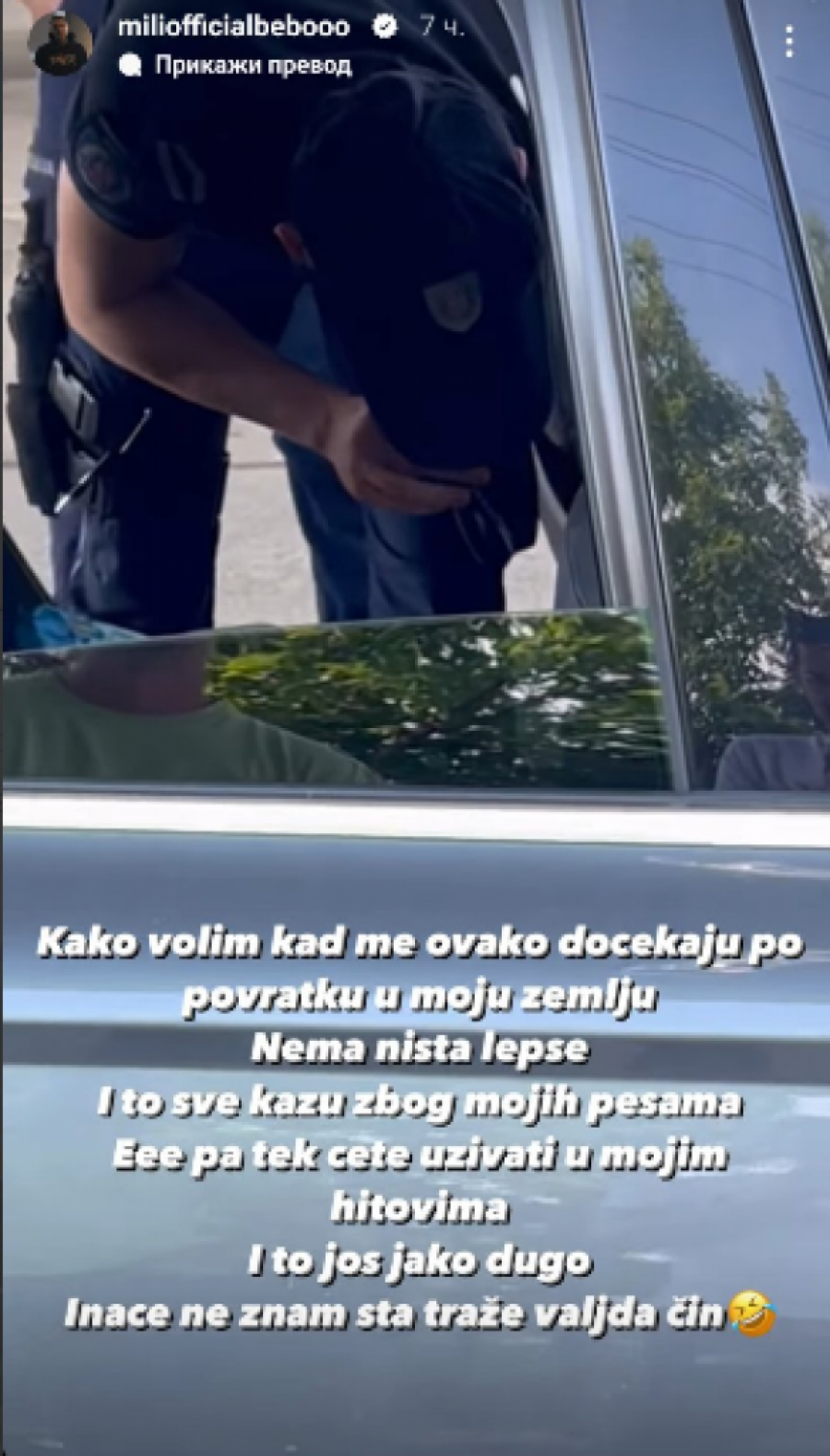 - Kako volim kad me ovako dočekaju po povratku u moju zemlju. Nema ništa lepše. I to sve kažu zbog mojih pesama. Ee pa tek ćete uživati u mojim hitovima i to još jako dugo. Inače, ne znam šta traže, valjda čin - napisao je on.