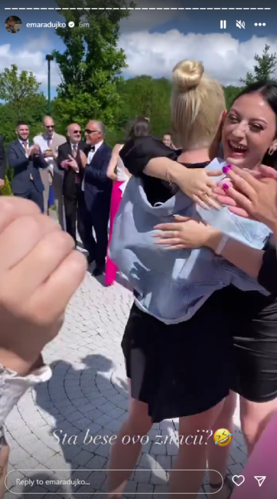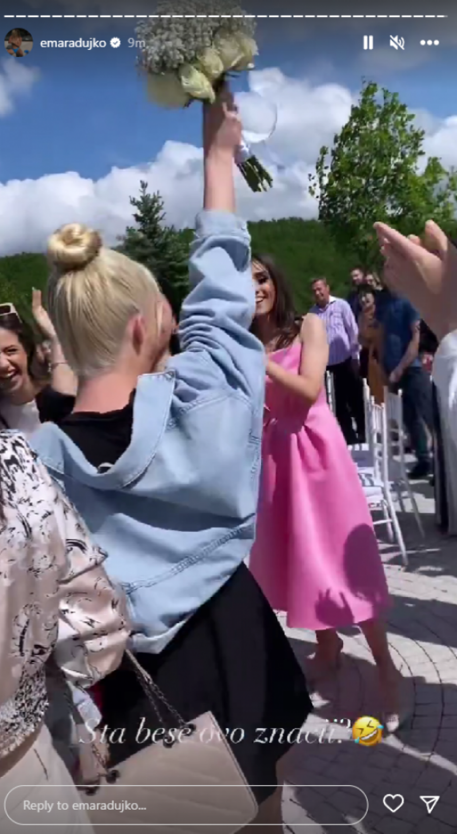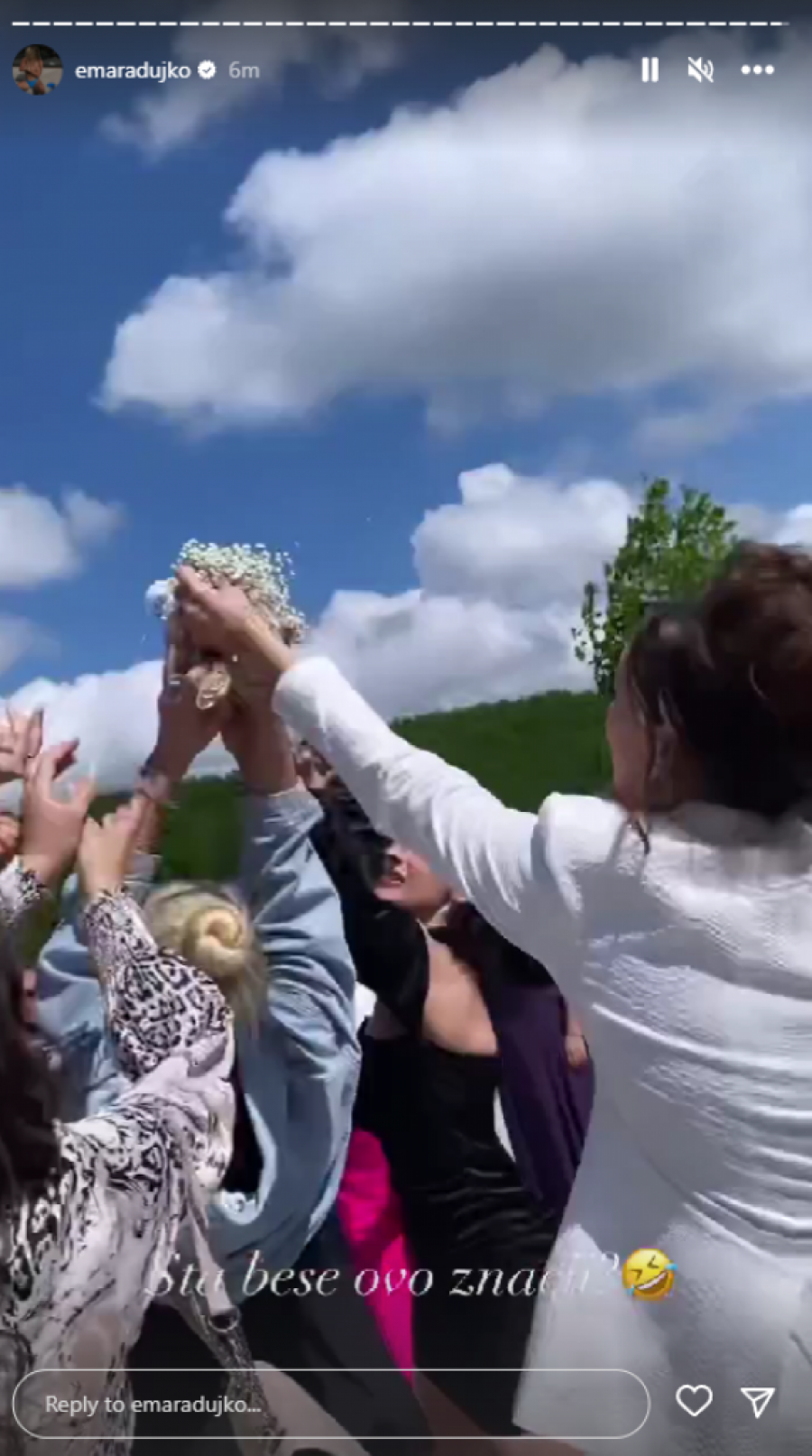 Ema nije mogla da sakrije sreću kada je uhvatila bidermajer, a ostale devojke su joj redom prilazile i čestitale.