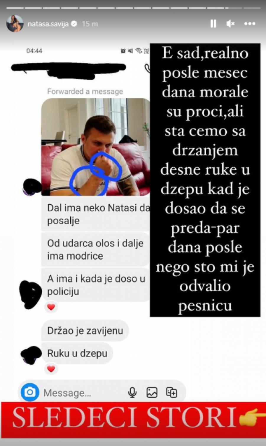 - E sad, realno, posle mesec dana morale su proći, ali šta ćemo sa držanjem desne ruke u džepu kad je išao da se preda - par dana posle nego što mi je odvalio pesnicu - napisala je Nataša na Instagramu.