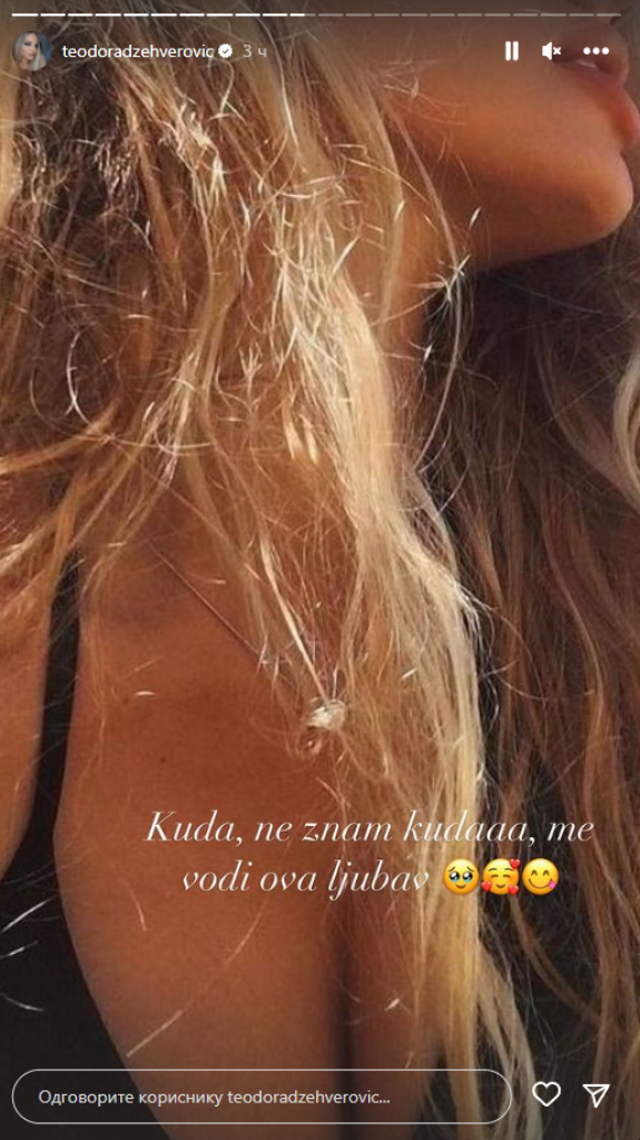 Međutim, danas je na njenom Instagram profilu osvanula fotografija grudi, preko kojih je Teodora napisala stih pesme: