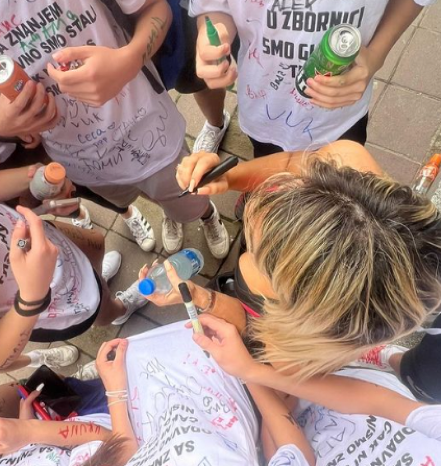 Jeremićeva se potom i potpisala svima ponaosob, na majicama, nekima i na telu, a sve to je ovekovečila na svom Instagramu.