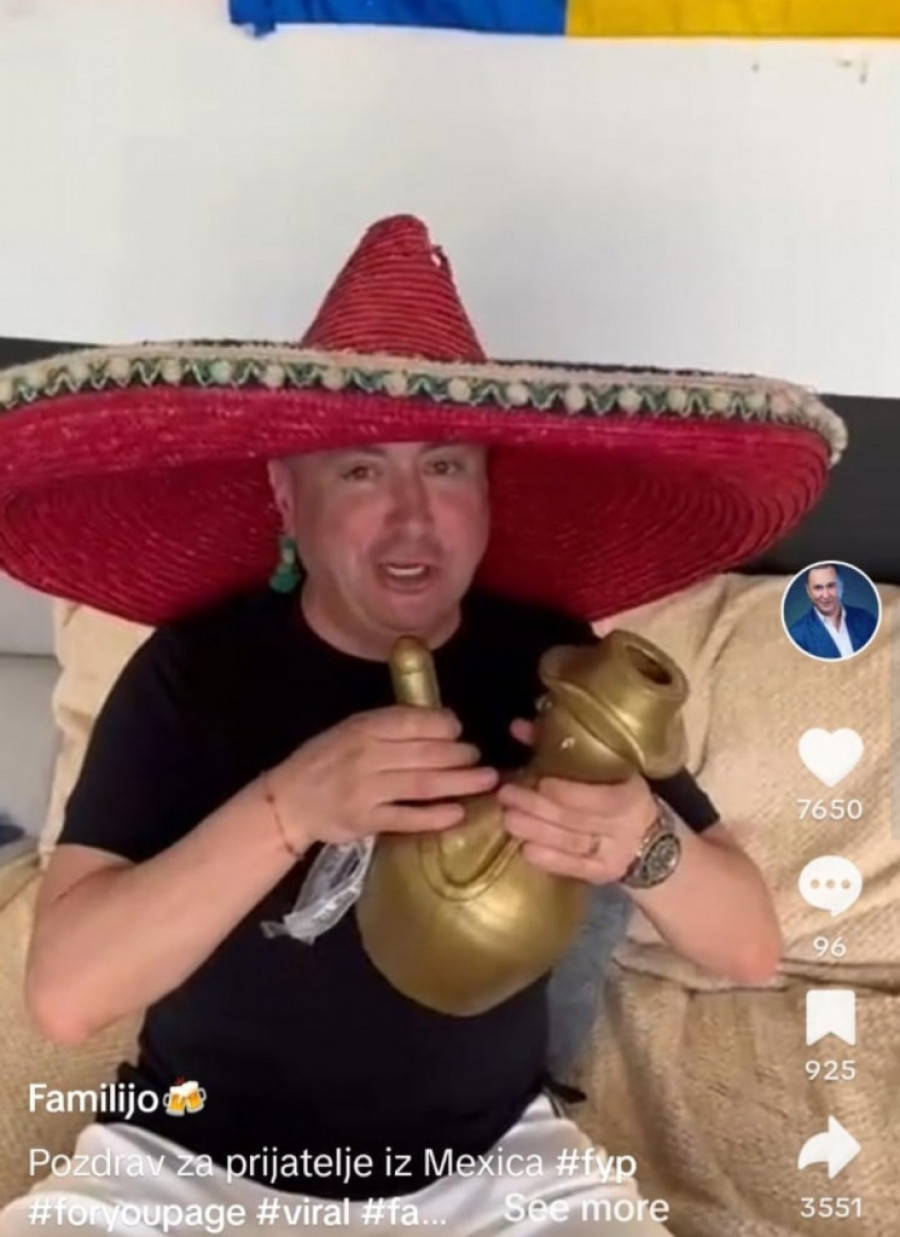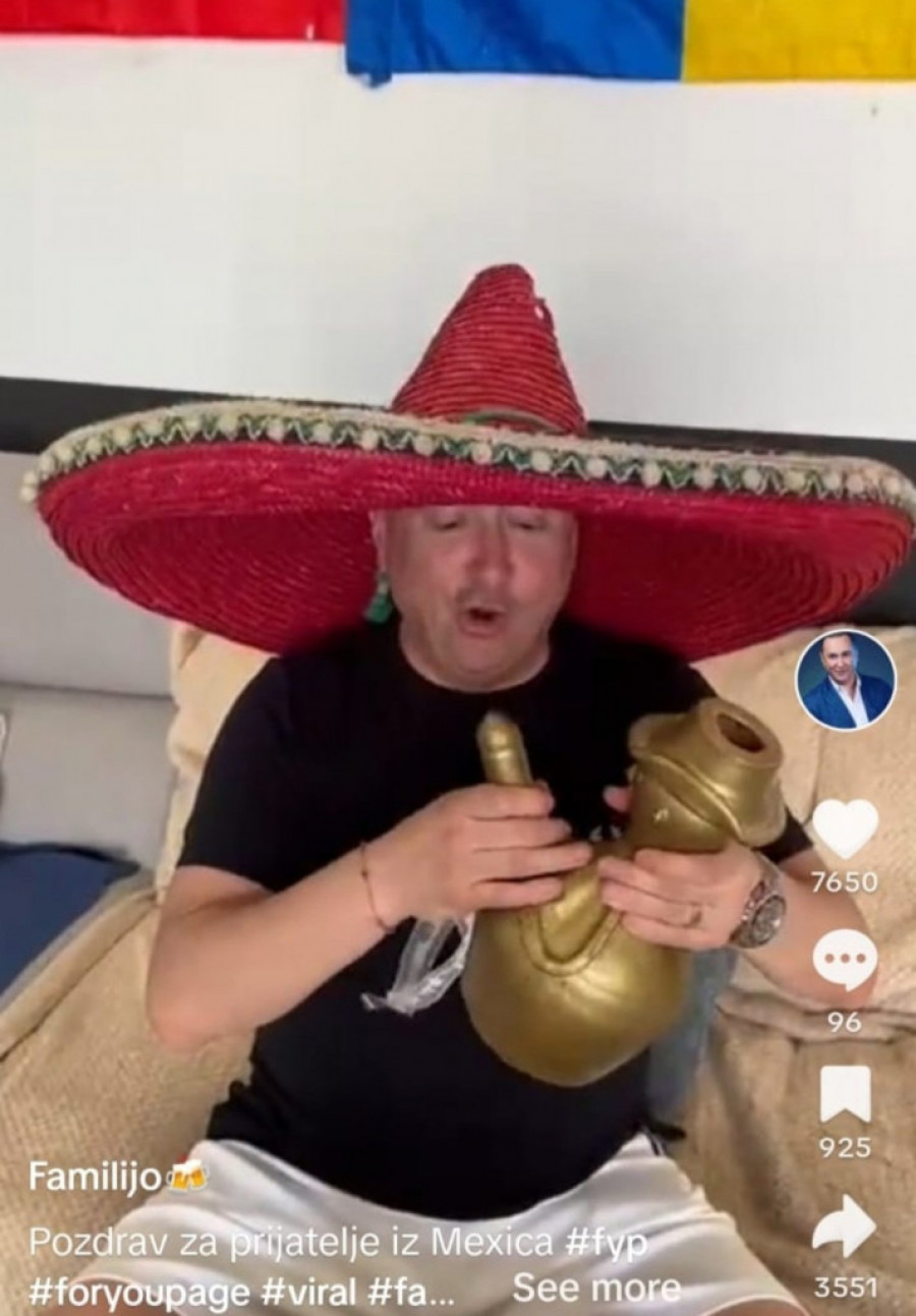 Đani je sedeo u jednom restoranu sa sombrerom na glavi, dok je u rukama držao neobičnu fuguru Maksikanca sa penisom u erekciji