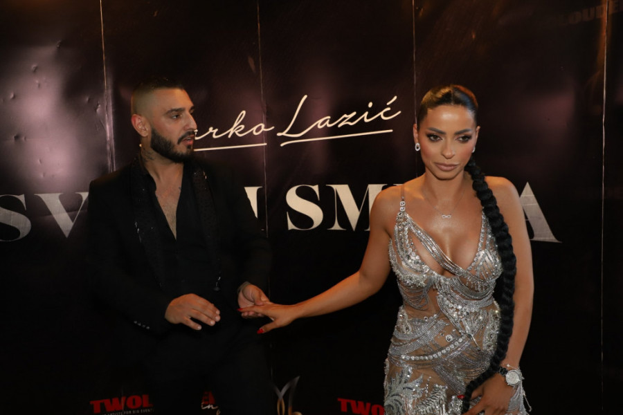 Popularni folker Darko Lazić je danas u jednom prestoničkom lokalu organizovao promociju svog novog albuma "Sve mi smeta". Na ovom događaju podršku mu je pružila supruga Katarina, koja je zablistala u srebrnoj haljini, a Darka neprestano ljubila.