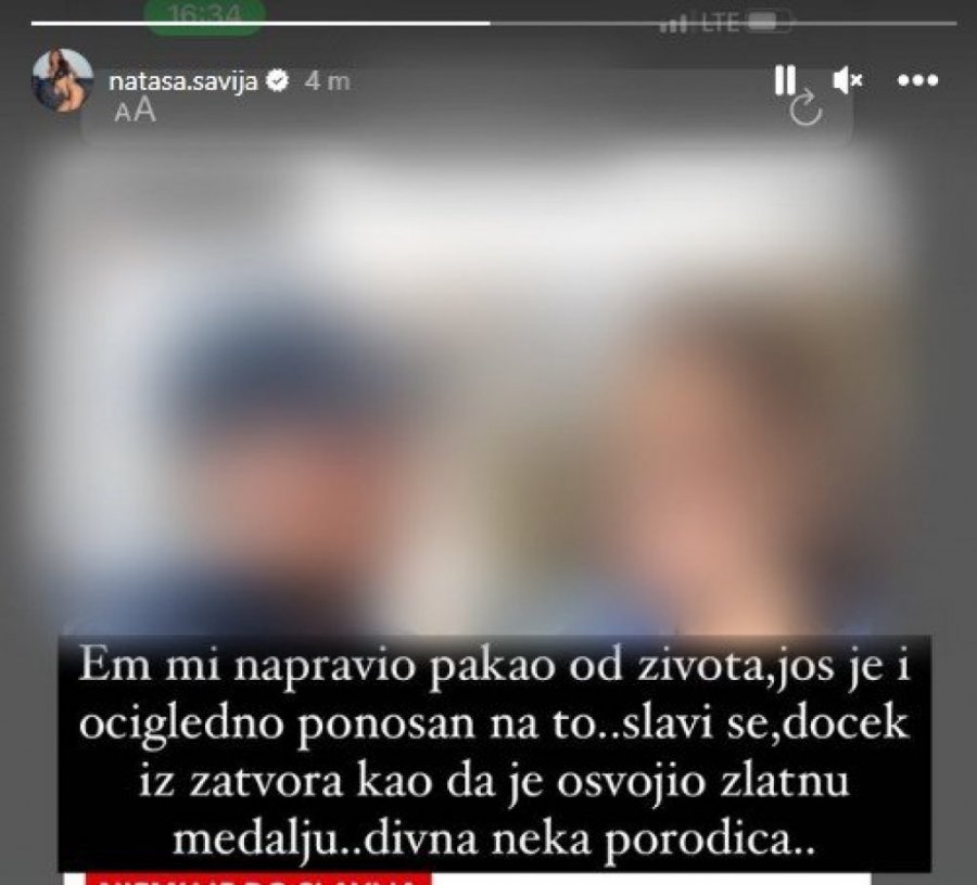 - Em mi napravio pakao od života, još je i očigledno ponosan na to... Slavi se, doček iz zatvora kao da je osvojio zlatnu medalju... Divna neka porodica - napisala je Nataša na Instagramu, što možete videti u nastavku: