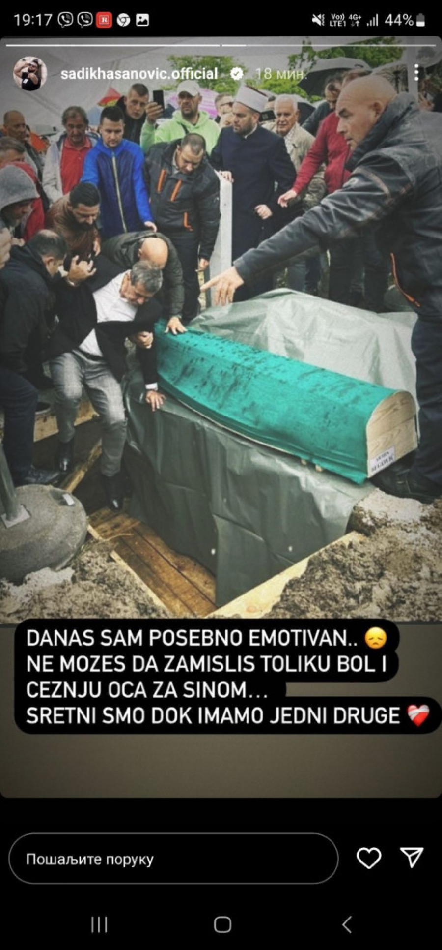 Na Instagram profilu Zvezda Granda, Sadik Hasanović objavio je vrlo potresnu sliku, na kojoj se vidi kako Enes kreće u večnu kuću za svojim pokojnim sinom Arminom.
