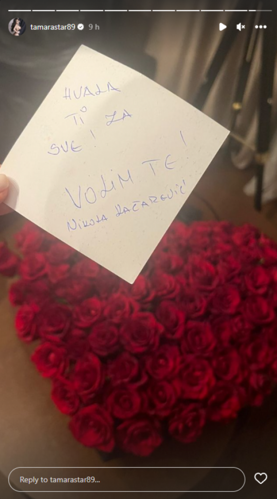 - Hvala ti za sve! Volim te! Nikola Kačarević - glasila je poruka koju je Tamara dobila uz buket crvenih ruža u obliku srca.