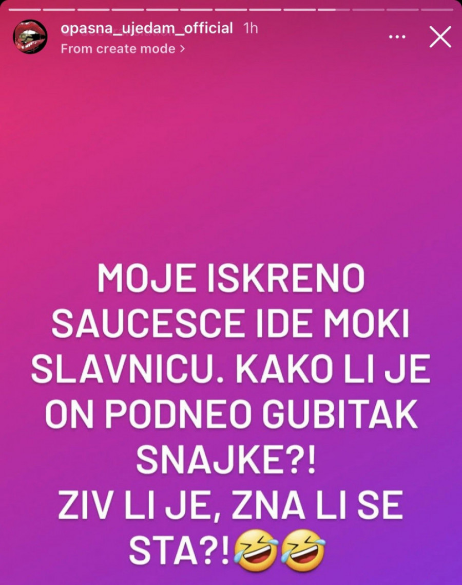 - Moje iskreno saučešće ide Moki Slavniću. Kako li je on podneo gubitak snajke?! Živ li je, zna li se šta? - glasio je status na jednoj Instagram stranici.