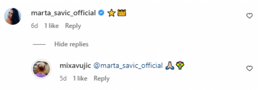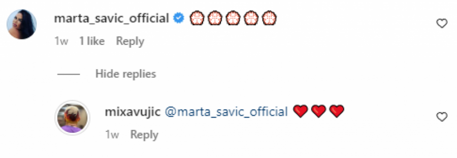 Naime, Marta pruža podršku nezvaničnom zetu sa svog Instagram profila, u vidu komentara i pohvala na račun njegovih fotografija, a on uvek kulturno odgovori i zahvali se.