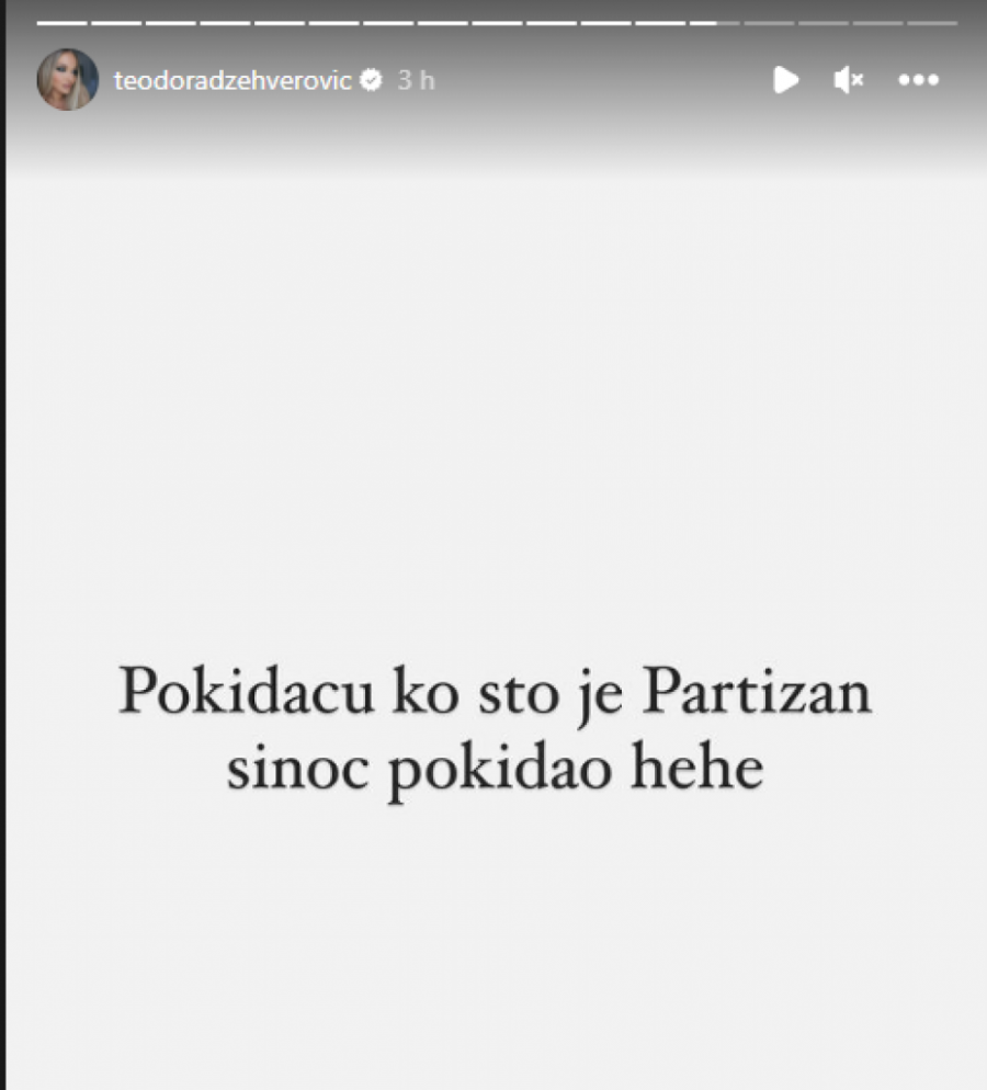 - Pokidaću ko što je Partizan sinoć pokidao hehe - napisala je Teodora na Instagramu.