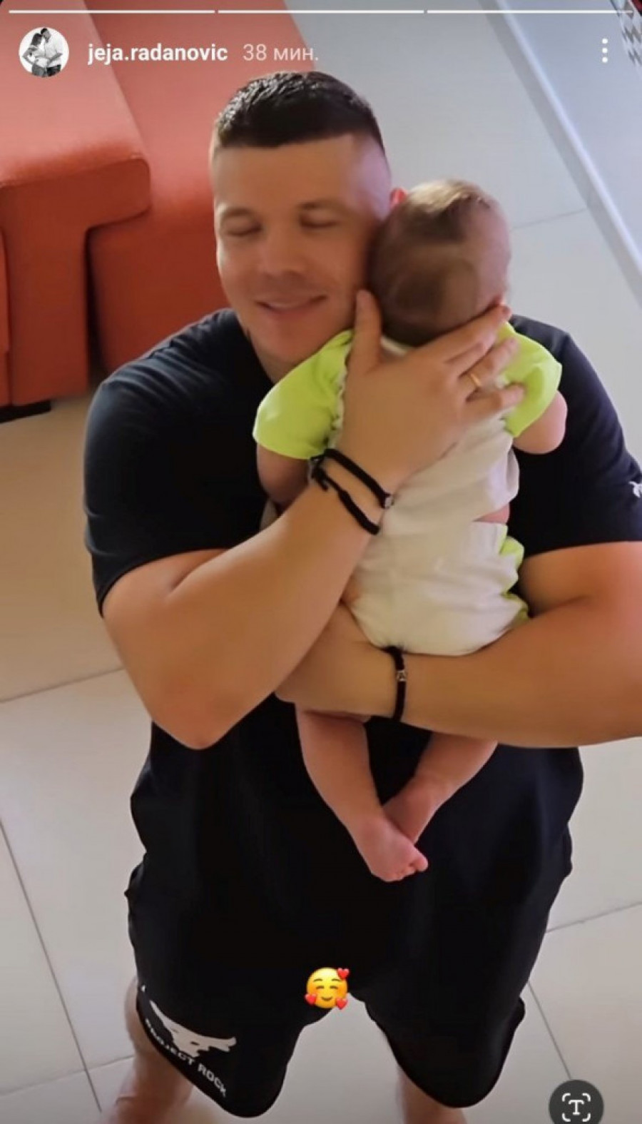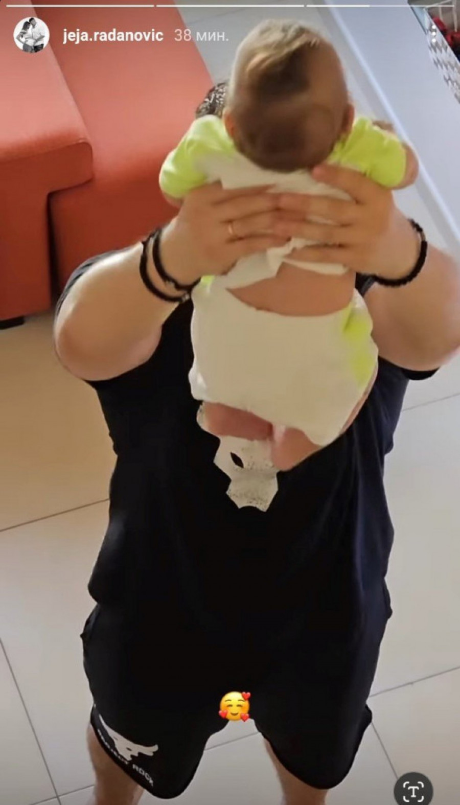 Njegova supruga Jelena je danas raznežila pratioce na društvenoj mreži Instagram. Ona je usnimila Slobu i Damjana kako se igraju. Sloba je držao svog naslednika u rukuma i dizao ga u vazduh, a osmeh sa lica nije skidao.