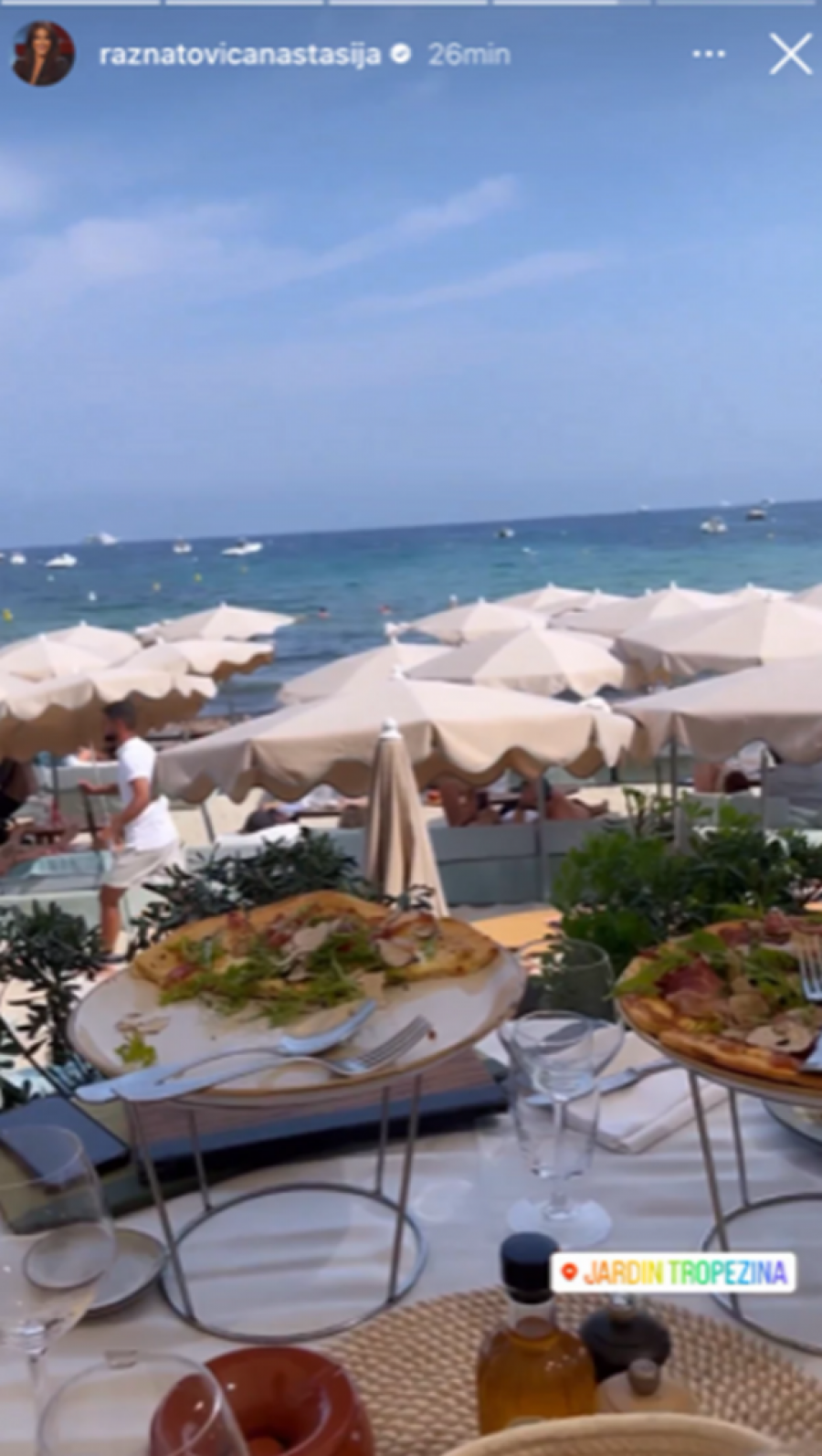 Ona je na Instagramu podelila snimak iz Sen Tropea i pokazala kako uživaju u morskim plodovima i prelepom pogledu na plažu.