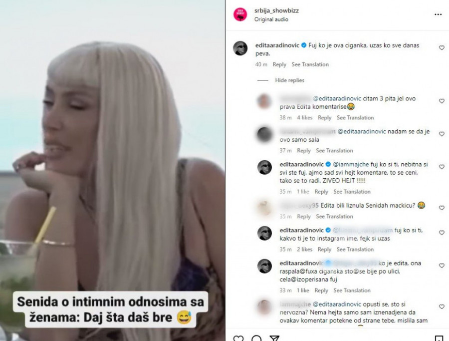 Nakon što su se pojavili komentari sa zvaničnog profila Edite Aradinović o pevačici Senidi na jednoj Instagram stranici, ona se oglasila za Republiku i objasnila šta se desilo.