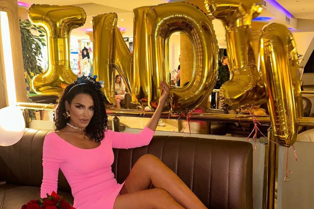 Dobila je buket ruža i zlatne balone sa svojim imenom. Indira nije krila oduševljenje, te je sve usnimila, a onda se u uskoj roze haljini koja ističe njenu figuru fotografisala pored balona kojima je bila fascinirana.