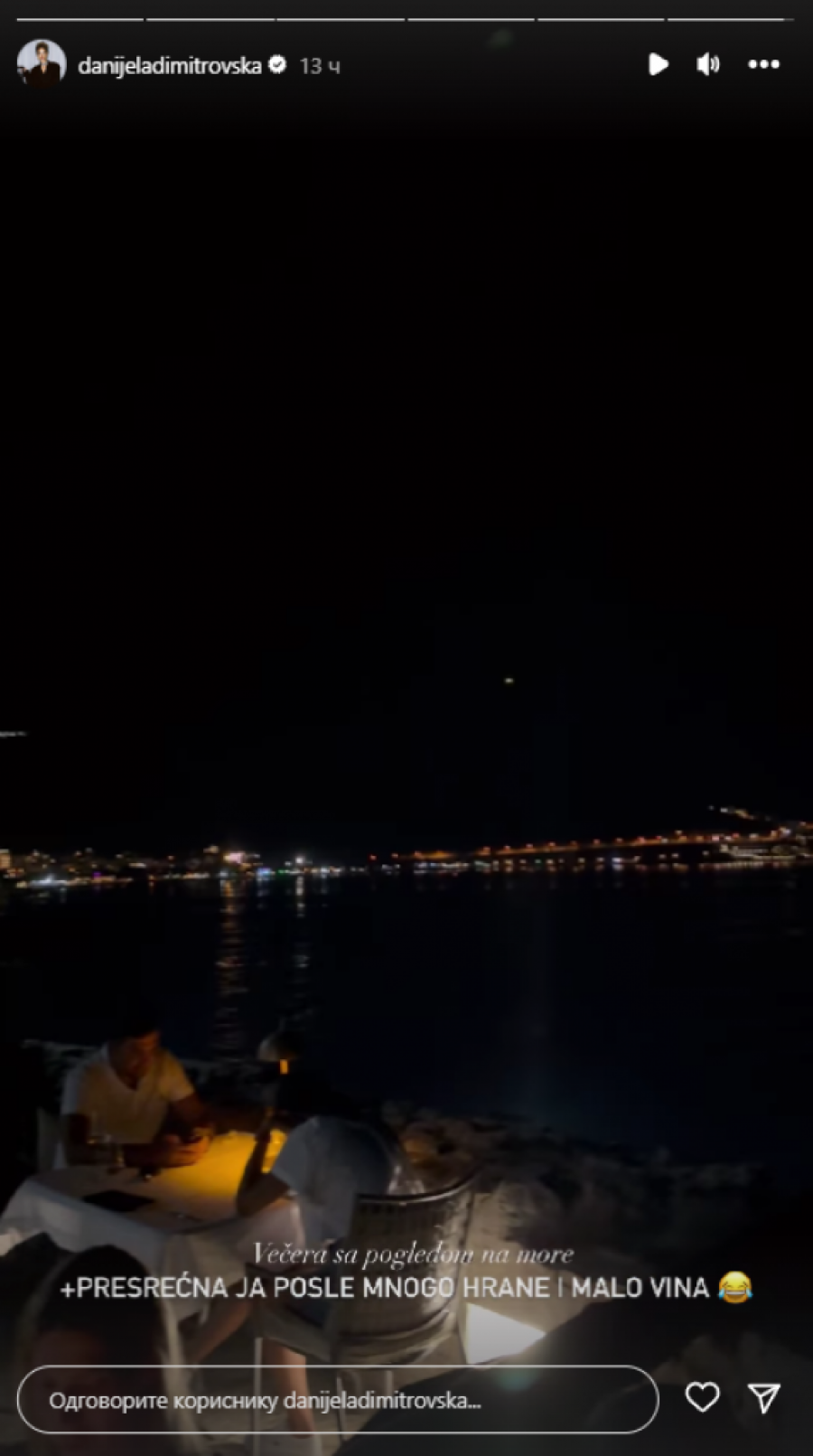 Danijela je noć provela u jednom luksuznom restoranu, koji je davno želela da poseti. Ona je objavila stori i pokazala kako uživa u pogledu na more.