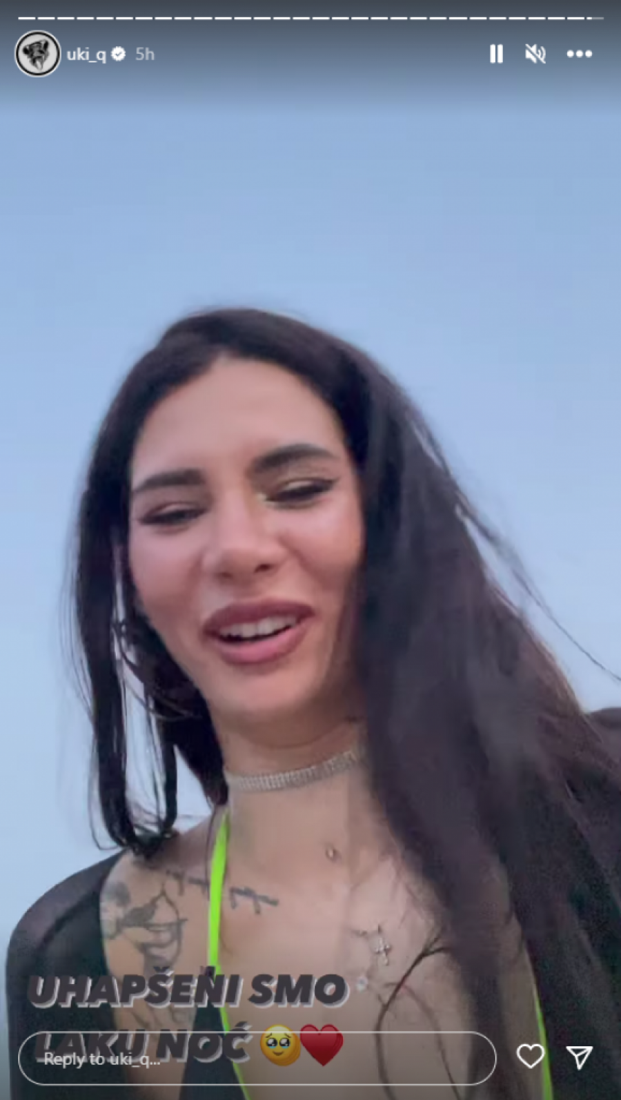 - Uhvatila nas je policija! Uhapšeni smo, laku noć - istakla je Uki u nizu svojih objava na pomenutoj društvenoj mreži, te tako zabrinula svoje pratioce da li je u pitanju samo šala ili će influenserka morati da odgovara zbog kršenja zakona.