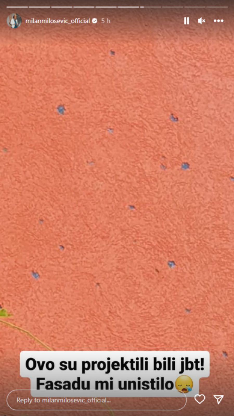 - Ovo su projektili bili, fasadu su mi uništili - napisao je Milan na Instagram profilu.