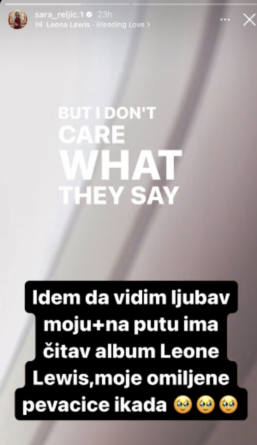 - Idem da vidim ljubav plus na putu ima čitav album Leone Levis, moje omiljene pevačice ikada - napisala je Sara na Instagramu.