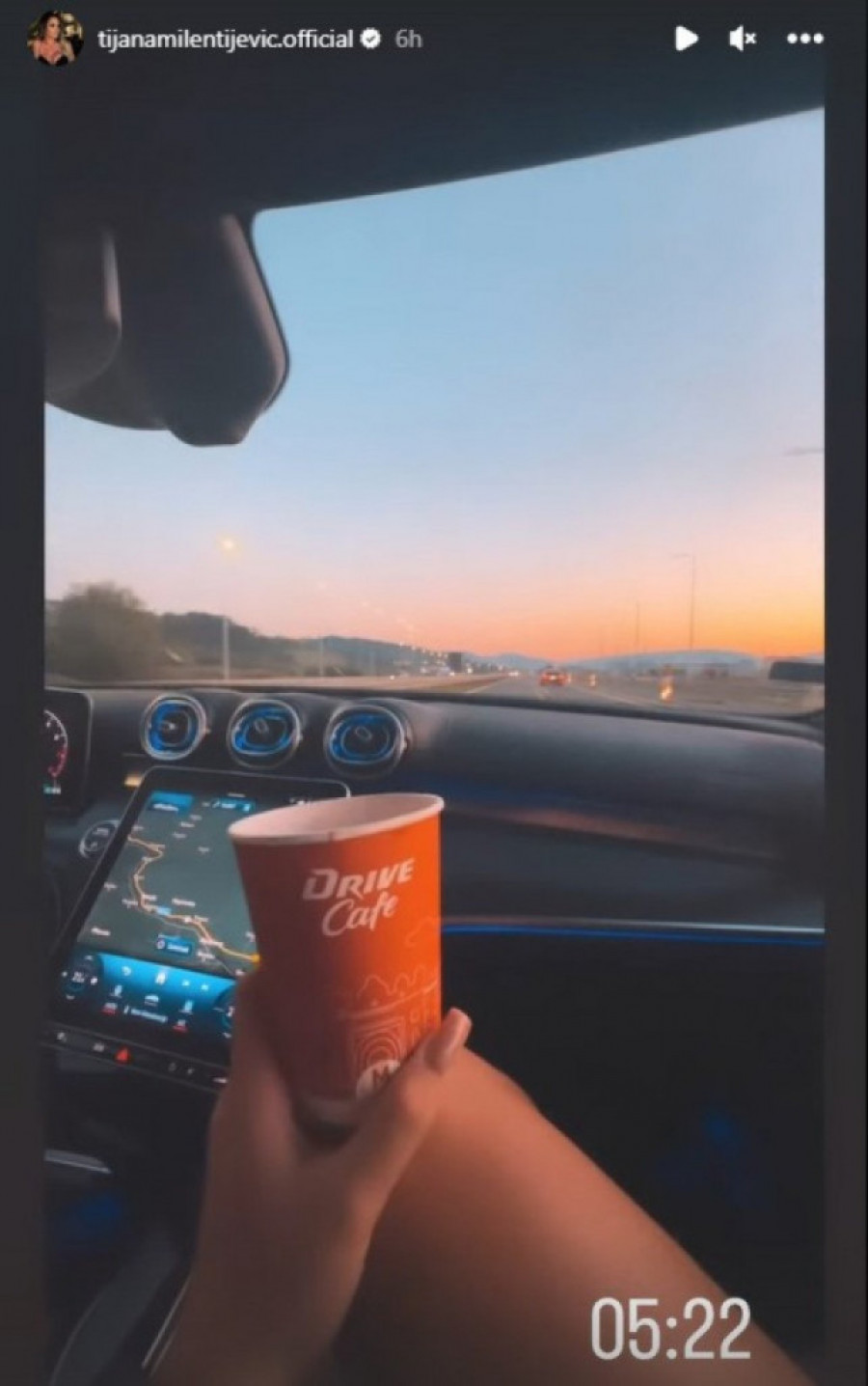 Par je bio na nekom veselju u društvu prijatelja u mestu Rožaje, ali nije jasno da li su se zajedno i vratili u zoru. Tijana je objavila i video tokom putovanja kako se sedi sa šoljom kafe na suvozačevom mestu, davajući do znanja da uživa u izlasku sunca dok se vozi.