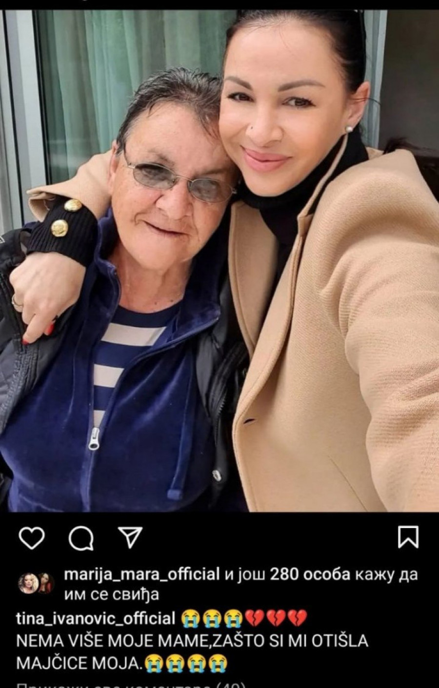 Pre nekoliko dana u Vrnjačkoj Banji preminula je majka pevačice Tine Ivanović. Ona je bila na lečenju, ali nije uspela da se izbori sa bolešću koja ju je mučila.