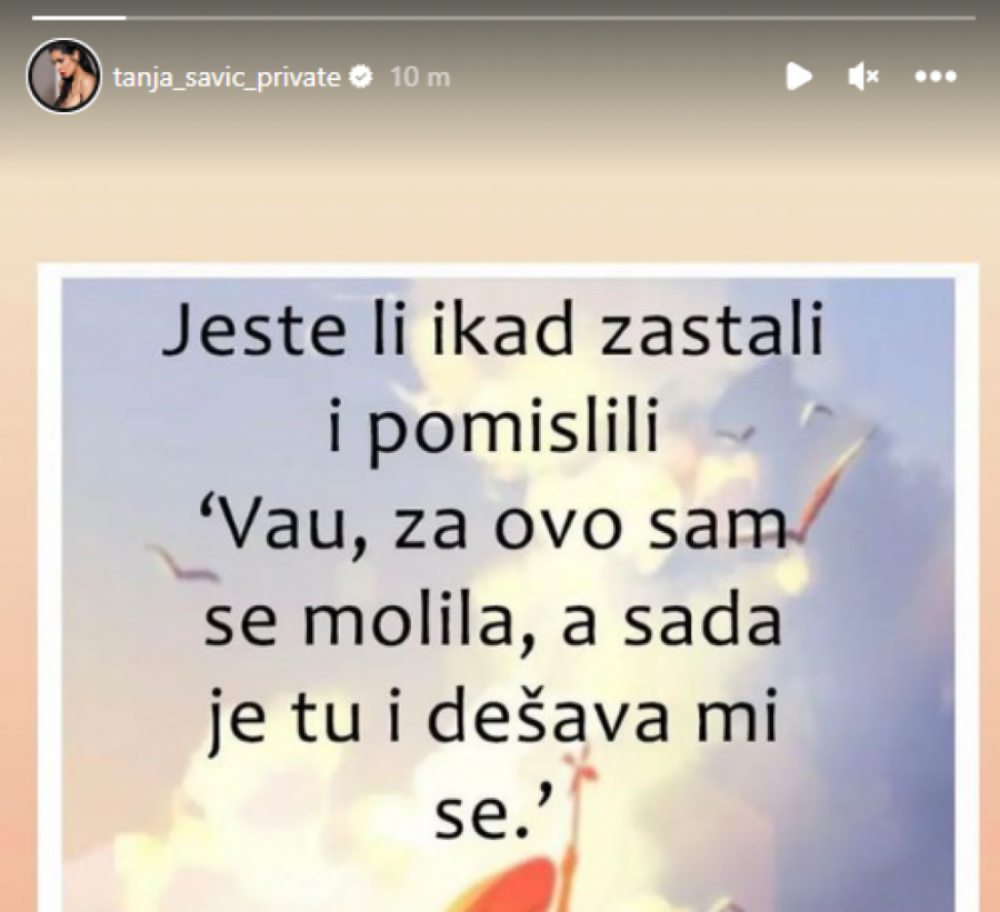 - Jeste li ikad zastali i pomislili: ,,Vau, za ovo sam se molila, a sada je tu i dešava mi se" - stoji na statusu koji je Tanja objavila.