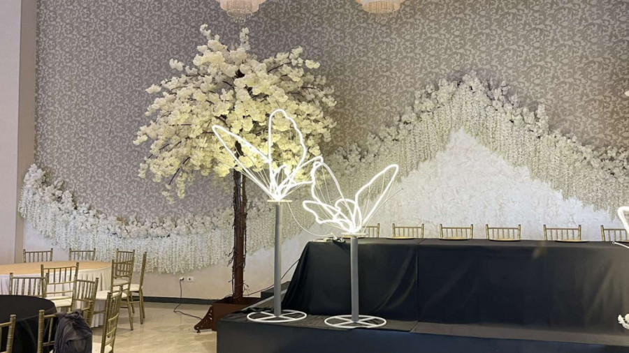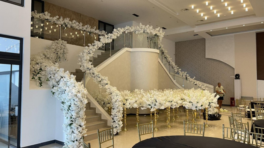 Katarina je zajedno sa Lazićem izabrala da cela svečana sala bude dekorisana u belo-zlatnim detaljima, kao i raskošnim buketima, te nama mesta koje nije prekriveno cvećem u nežnim tonovima, za koje je, kako saznajemo, izdvojeno "malo bogatstvo".