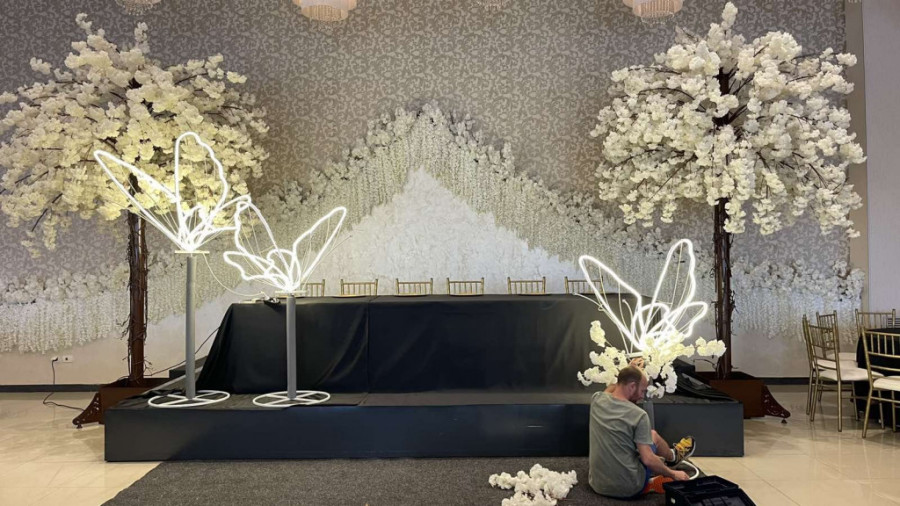Mladenci će, inače, fotografisati sa gostima ispred mladenačkog stola jer ima puno zvanica, ali će ispred ulaza u restoran biti napravljen tunel kroz koji će gosti ulaziti.