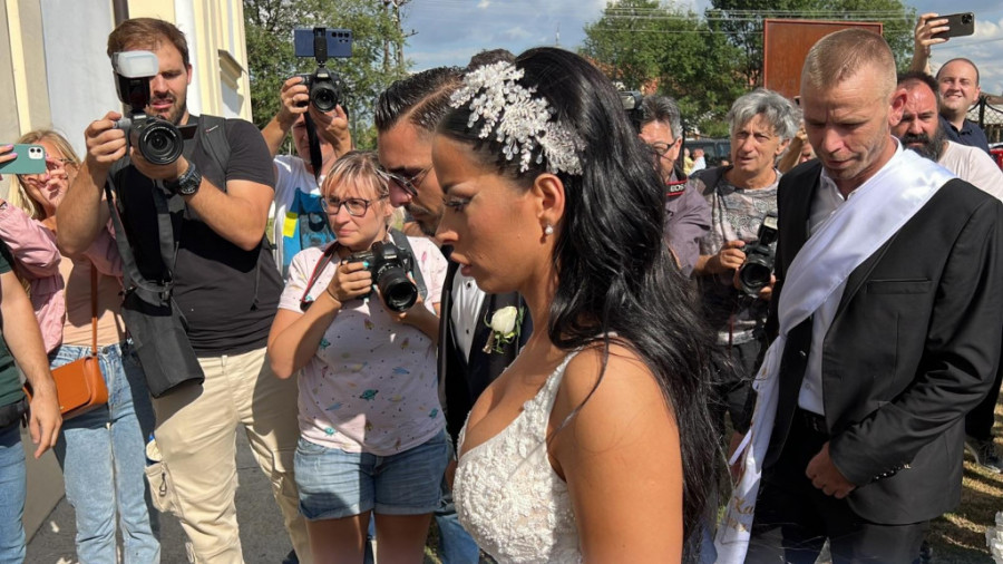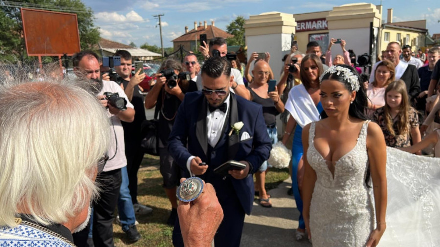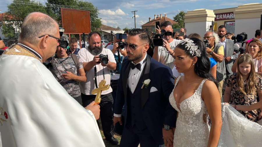 Mladenci Katarina i Darko Lazić stigli u crkvu u Brestaču, gde će se obaviti svečana ceremonija. Sveštenici koji će obaviti ovaj čist su ih dočekali ispred crkve, a zatim su svi zajedno ušli u hram i počela je ceremonija venčanja.