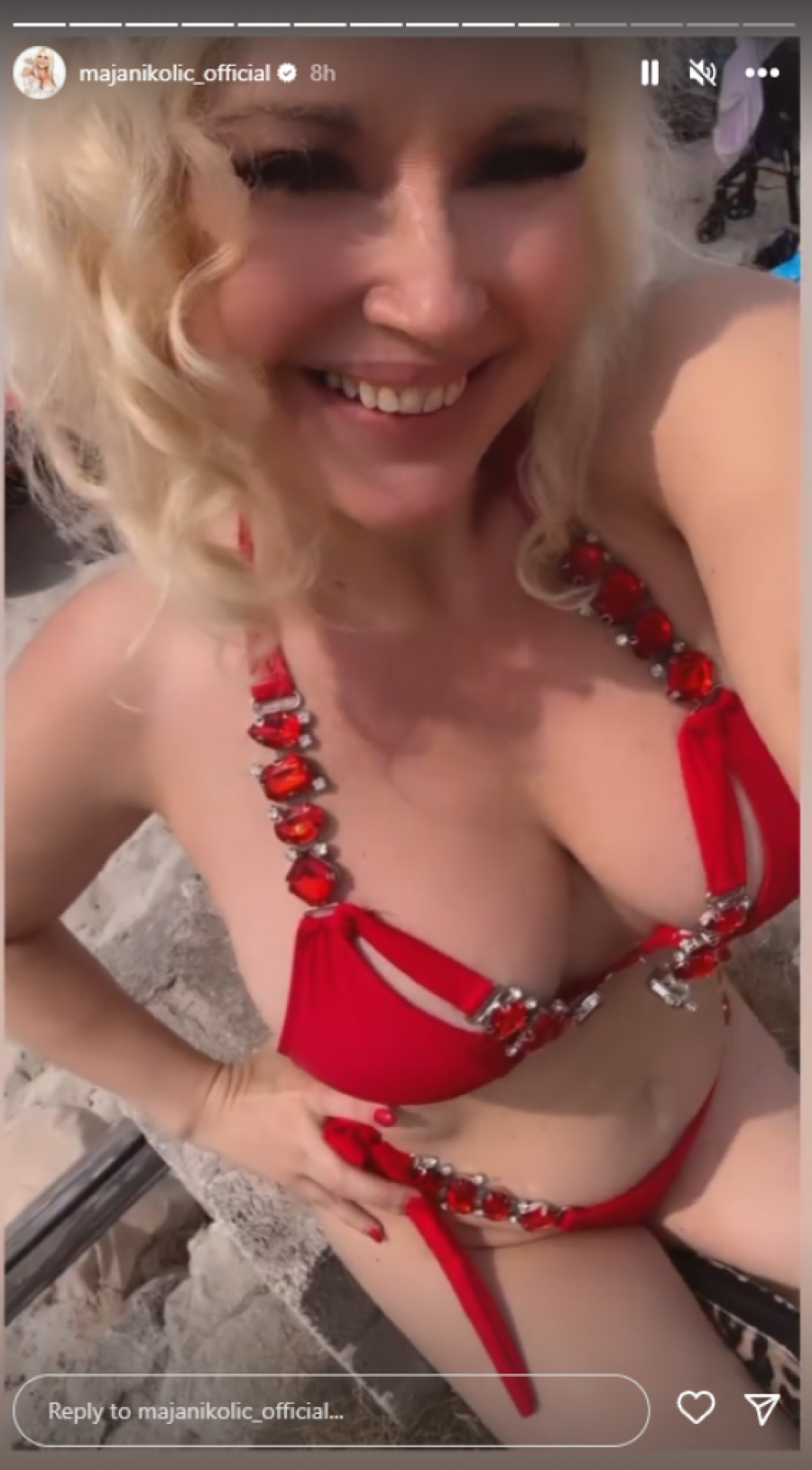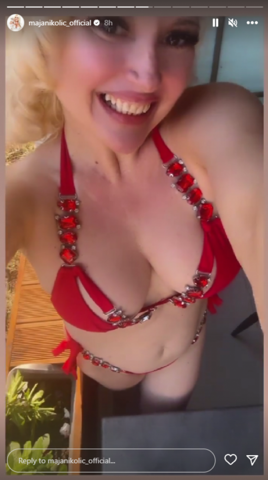 Naime, ona je objavila vrele fotografije u minijaturnom, crvenom kupaćem kostimu, a kako nije odolela jednom motoru, odmah je ušla u prodavnicu i "isprobala" ga, pa snimak objavila i izazvala opštu pometnju na društvenim mrežama.
