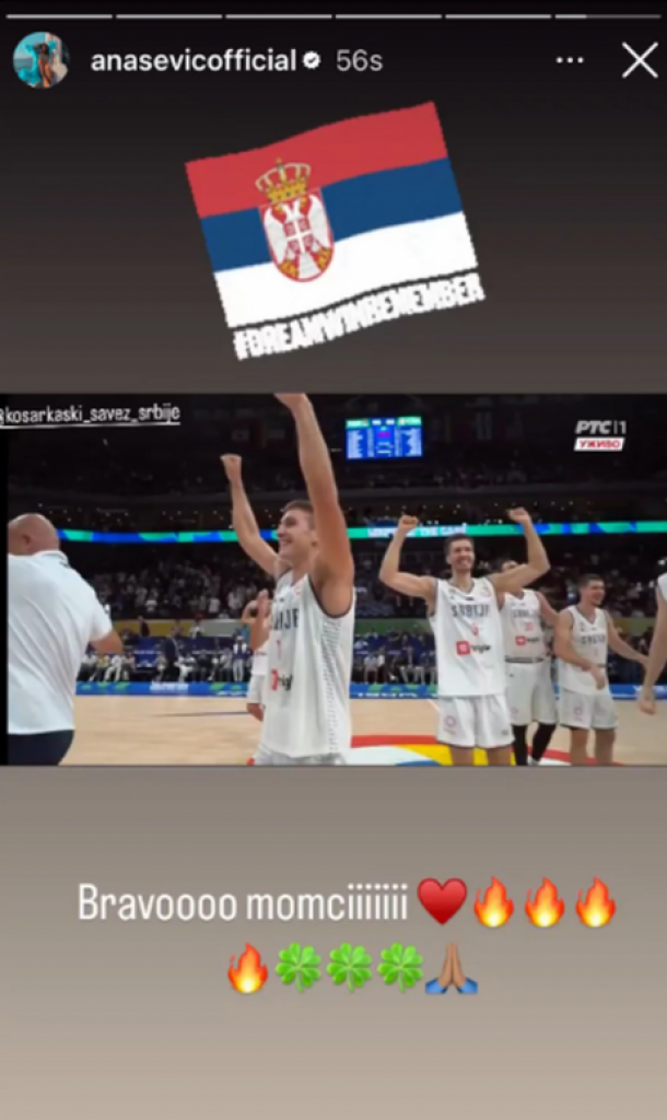 Bravo, momci - napisala je Ana na svom Instagram storiju, a uz sliku prenosa utakmice stavila je animaciju srpske zastave.