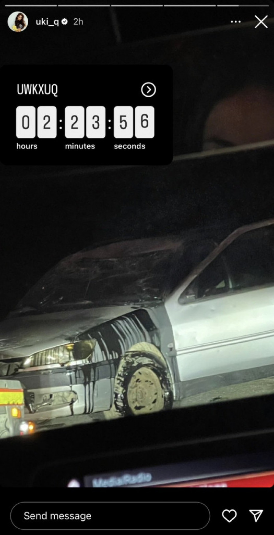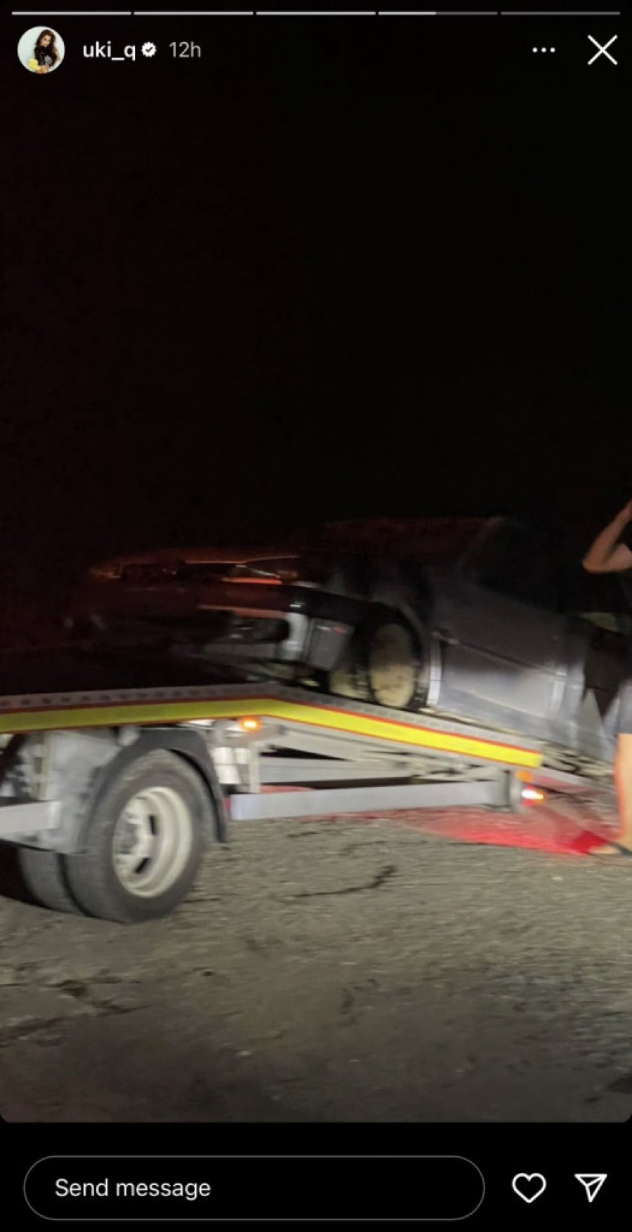 Međutim, Uki Q je noćas šokirala sve koji je prate na društvenimn mrežama kad je podelila fotografiju automobila po koji je morao da dođe šleper. Na slici je moglo da se vidi da je autouništen, ali ona nije otkrivala više detalje.