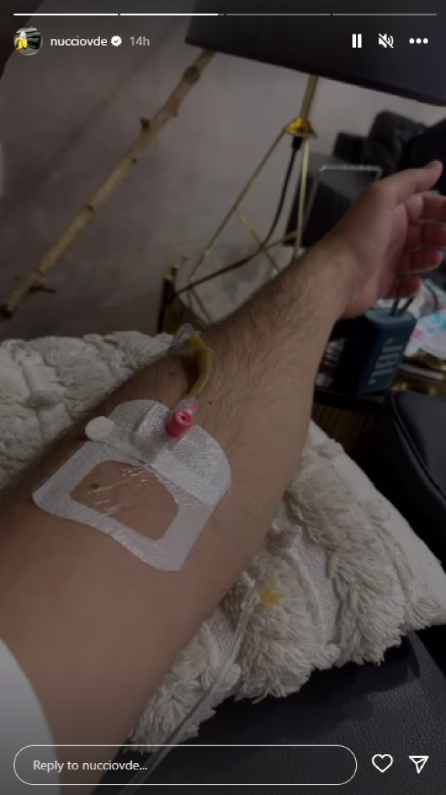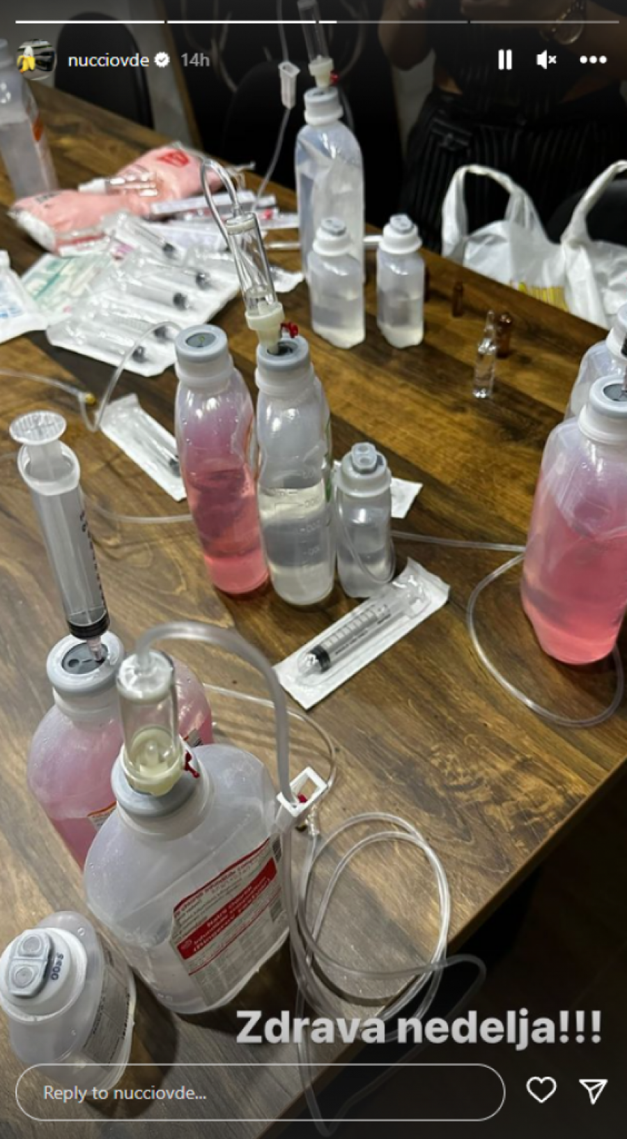 Naime, Nući se usnimio dok je primao infuziju i taj video-snimak podelio na društvenim mrežama. Poznato je da reper više puta nedeljno ima nastupa po različitim klubovima, zbog čega mu verovatno padne imunitet.