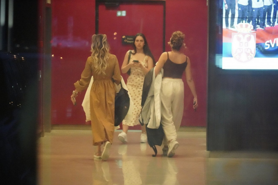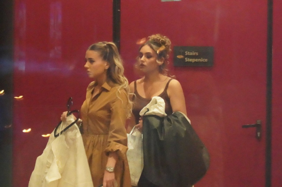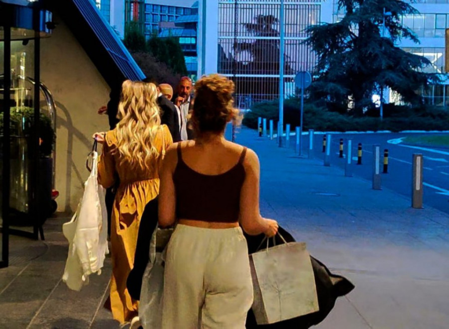 Njegove ćerke uslikali smo na ulazu hotela, ali na sebi još uvek nisu imale svečane toalete koje će nositi, već su krenule da se obuku i spreme za proslavu u jednu od soba, a haljine koje su pripremile nosile u rukama.