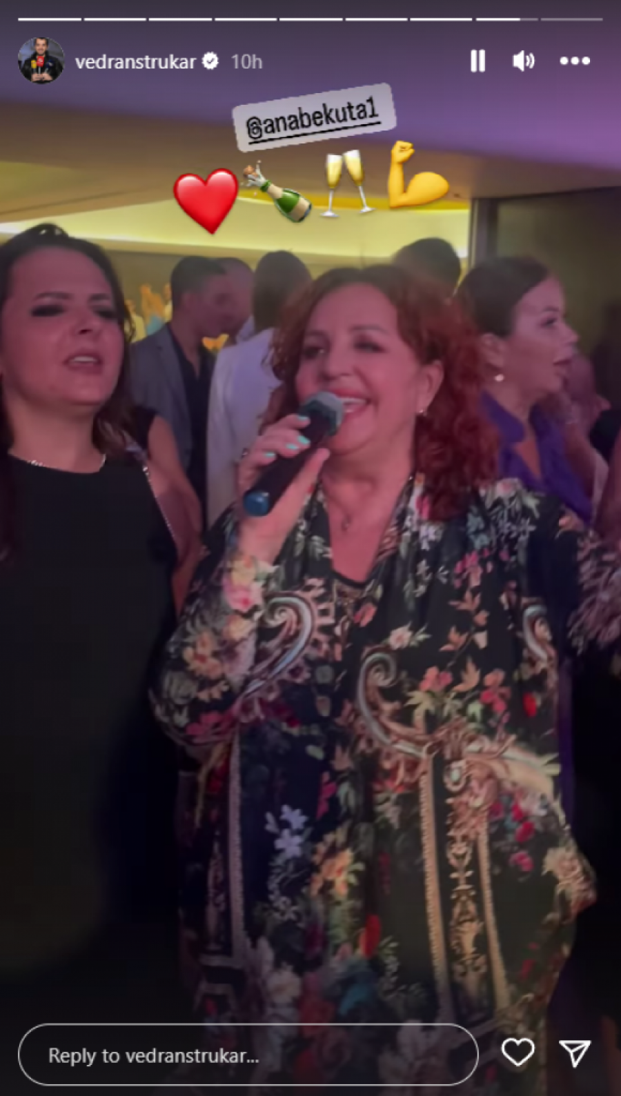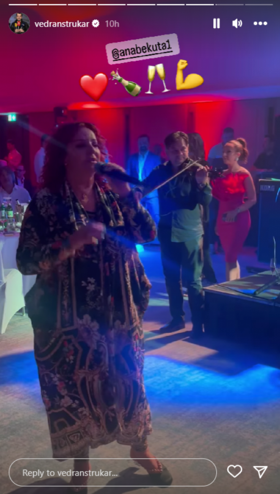 Slavljenicu Ivu posebno je oduševio nastup Ace Lukasa, koji je zapevao posebno za nju, a ona se popela na binu sa njim.