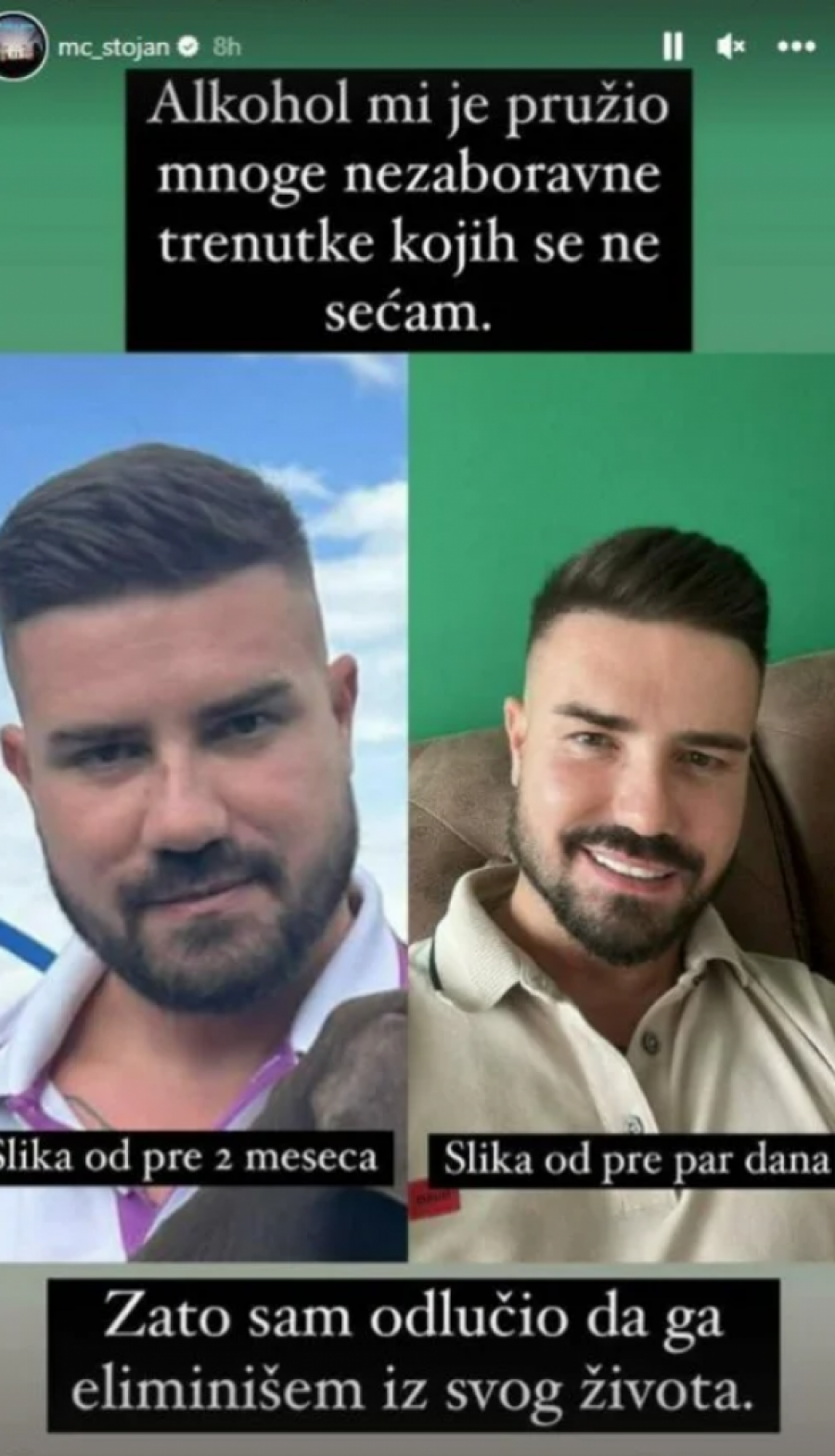 Marko Stojković, koji se proslavio kao MC Stojan, istakao je na društvenim mrežama da se rešio na veliku promenu u životu. Naime, on je ostavio alkohol, pa je i pokazao koliko se samo u licu izmenio otkako je piću rekao „ne".